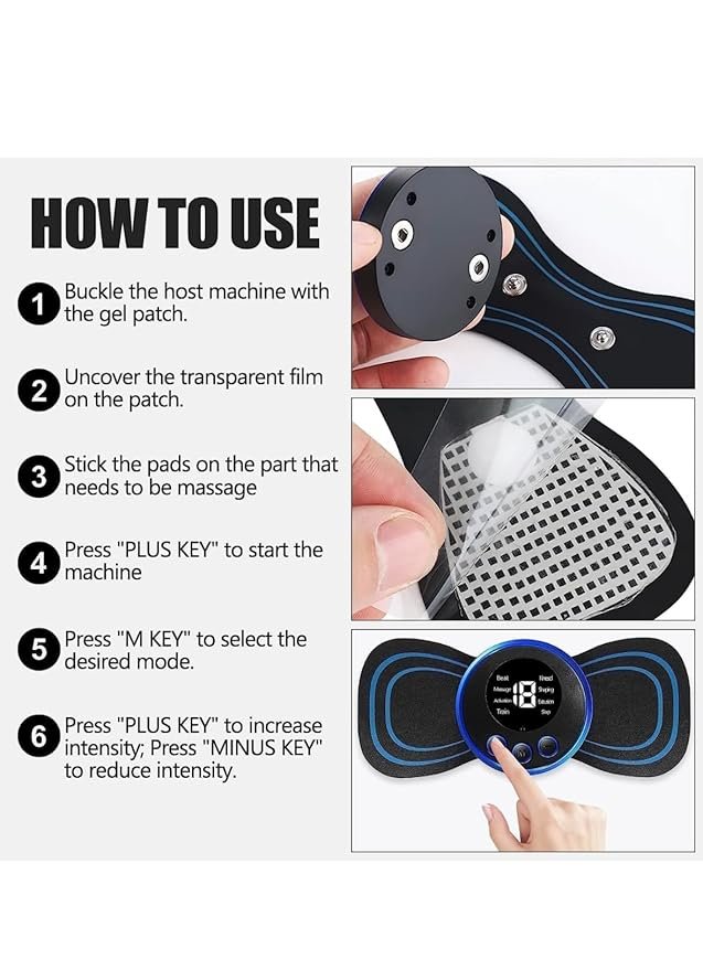 The Mobtude Full Body Mini Butterfly Massager is a compact and portable electric device designed to provide effective muscle relief and relaxation. Shaped like a butterfly, this massager uses Electrical Muscle Stimulation (EMS) technology to gently stimulate muscles, alleviate tension, and promote relaxation. Perfect for targeting multiple body areas such as the back, neck, shoulders, arms, and legs, it is an ideal solution for quick and effective relief from muscle fatigue and stress.