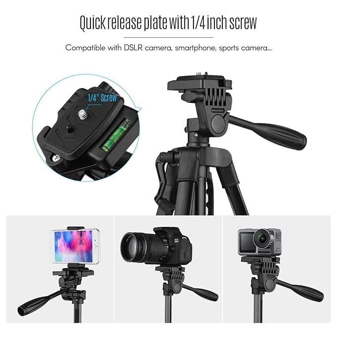 With a 5kg maximum load capacity, it supports most DSLR cameras, mirrorless cameras, camcorders, and more. Included phone holder lets you securely mount your smartphone for mobile shooting. -