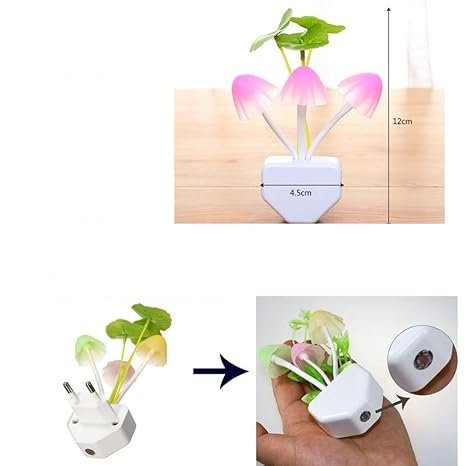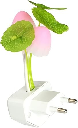Add a touch of charm to your room with this energy-efficient, plug-in night light. Designed with glowing mushrooms and green leaves, it features an automatic light sensor that turns on in the dark and off in bright light.